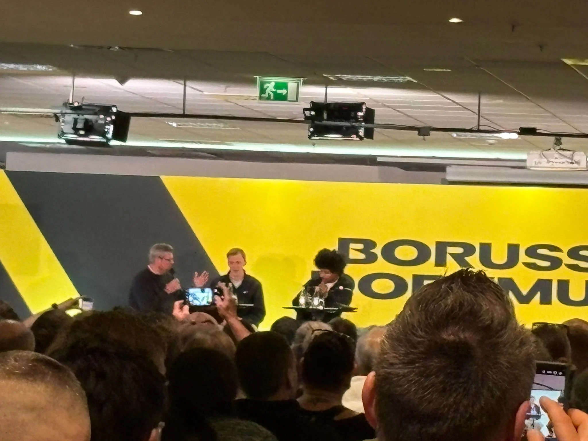 Anschließend fand die Diskussion zu ernsteren Themen mit der Vereinsführung (Carsten Cramer und Dr. Christin Hockenjos) statt. Es ging unter anderem um den neuen Sportdirektor, Vertragsverlängerungen, die Stehplatzkapazität in der Champions League und die beispielhafte energetische Versorgung des Stadions.
